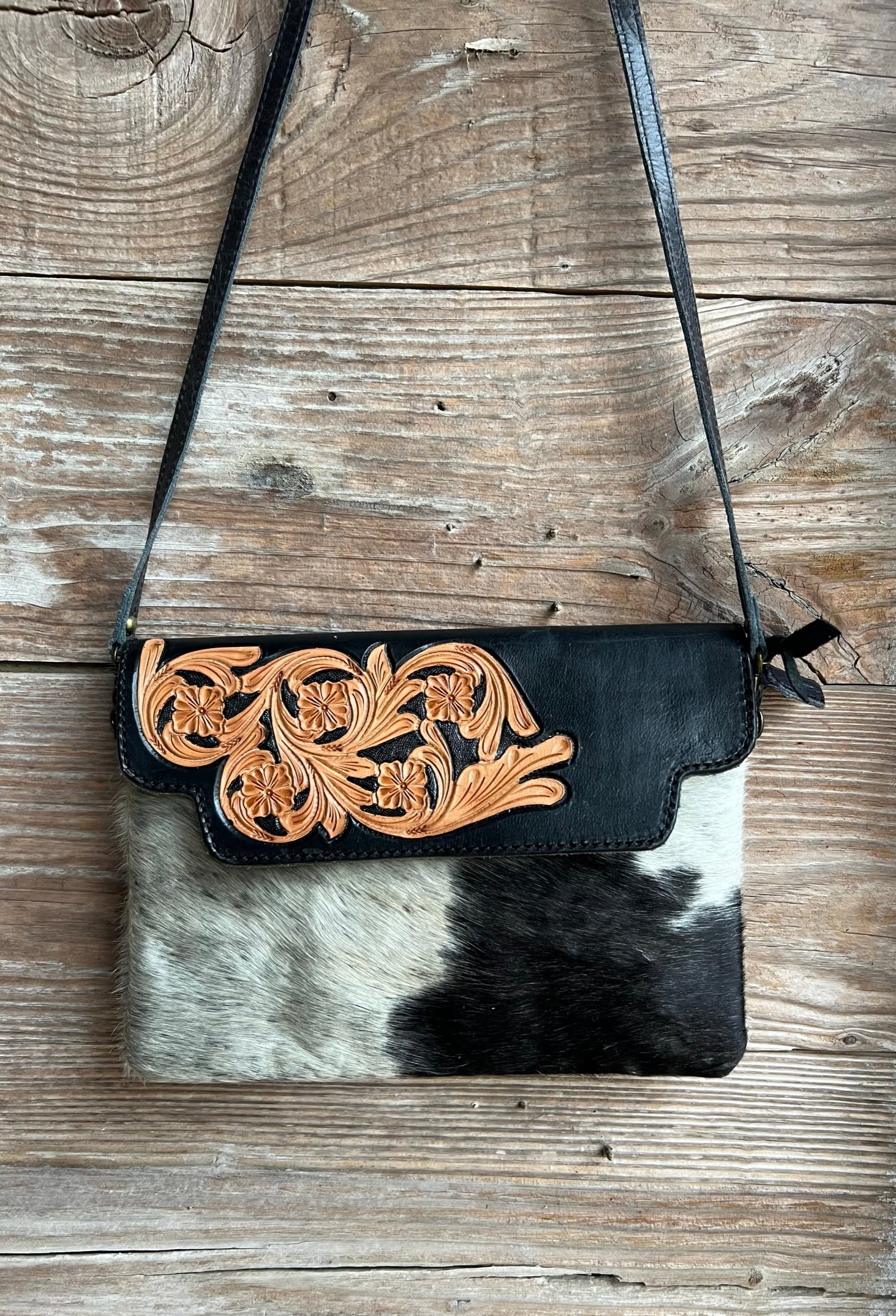 American Darling ADBG241 tooled leather and cowhide bag with adjustable strap