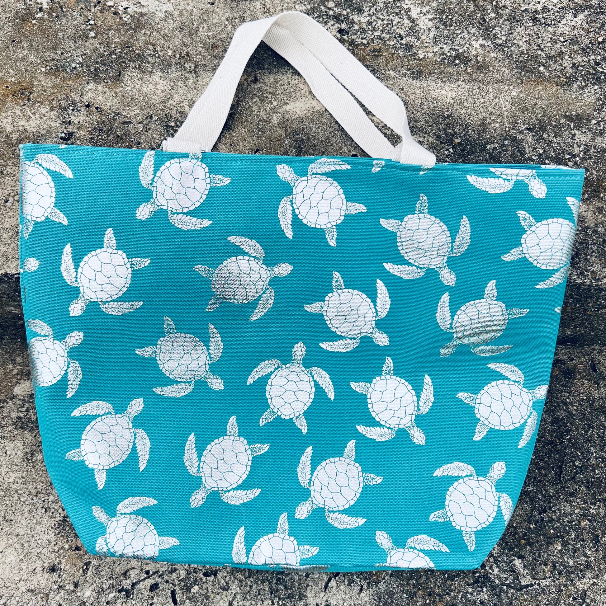 Silver foil turtle tote bag.